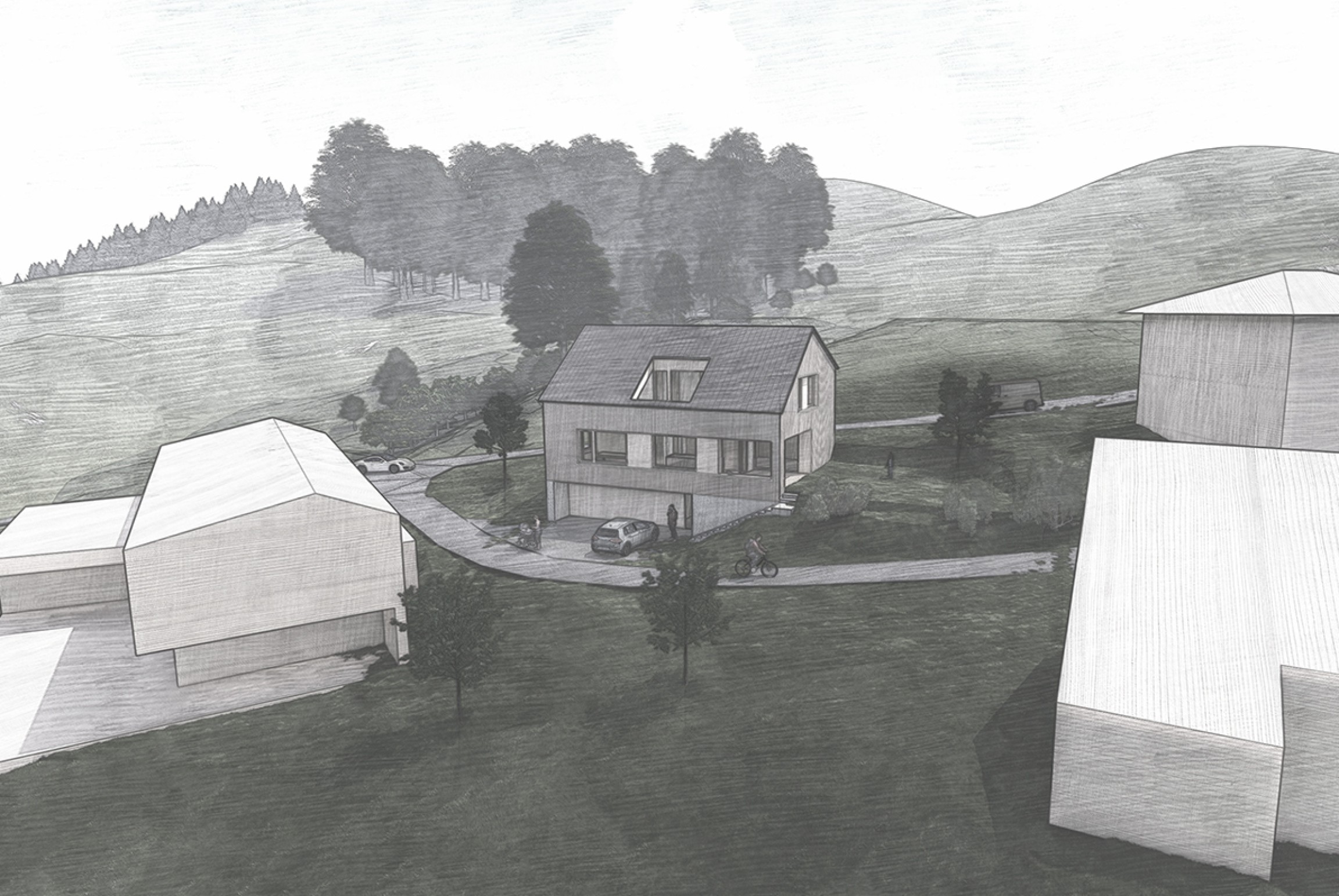 Entwufsstudie eines Einfamilienhaus in Holzbauweise