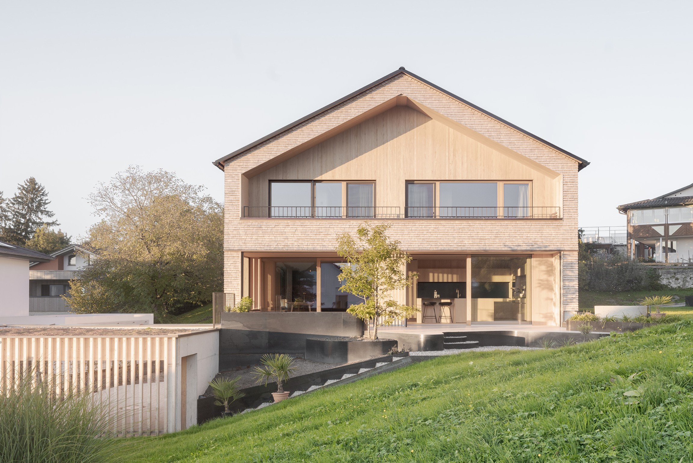 Mit dem Wohnhaus am Gängle entstand in Lindau ein Gebäude, das bewusst einen eigenständigen Weg geht. Während in der Region traditionell verputzte Massivbauten das Ortsbild prägen, setzt dieses Projekt ein klares Zeichen für einen zeitgemässen, konstruktiven Holzbau – als Ausdruck nachhaltiger Baukultur und verantwortungsvollen Umgangs mit Ressourcen.
