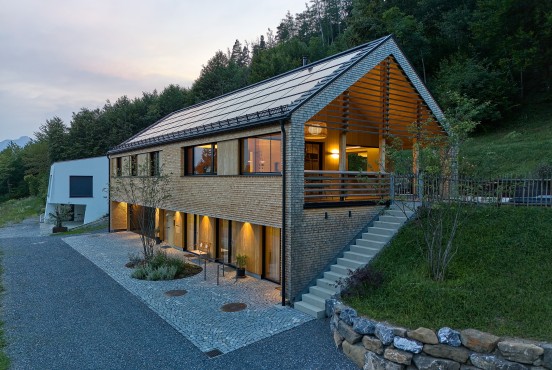 Beheizt wird das Wohnhaus über eine Wärmepumpe mit Tiefenbohrung, unterstützt durch eine Photovoltaikanlage. So verbindet das Projekt architektonische Klarheit, ökologische Materialien und zeitgemässe Energietechnik zu einem nachhaltigen Gesamtkonzept. Das Wohnhaus im Gängle zeigt, dass zukunftsfähiges Bauen in der Region nicht am Holzbau vorbeiführt – und dass zeitgenössische Architektur auch abseits gewohnter Bautypologien selbstverständlich ihren Platz finden kann.